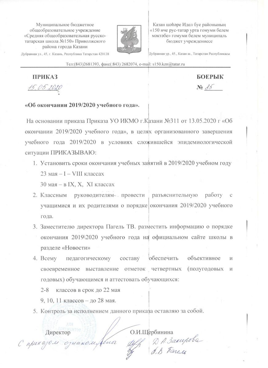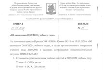 Приказ об окончании 2019\2020 учебного года 15.05.2020