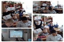 В ходе урока учащимся предлагались видеоролики о снежных и ледовых видах спорта, после чего все участники урока могли выполнить задания рабочей тетради. При условии правильного выполнения заданий в классе каждый имеет возможность в дальнейшем получить приз – бесплатные билеты на различные спортивные игры, проходящие в нашем городе. Некоторое время отводилось на выполнение домашних заданий, представленных в рабочей тетради. В выполнении оставшихся заданий было предложено принять участие родителям, родственникам. В результате ребята, которые дома будут использовать дополнительные источники информации, смогут успешно выполнить домашние задания и получить дополнительные призы. Кроме того, учащиеся 2-4 классов проявили инициативу и нарисовали тематические рисунки, что стало украшением класса.