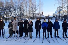 Наши учащиеся на уроках физкультуры с удовольствием катаются на лыжах