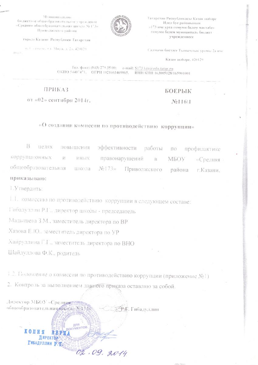 ПРИКАЗ И ПОЛОЖЕНИЕ ПО АНТИКОРРУПЦИИ