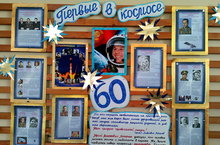 Праздничность мероприятию придала выпущенная газета-стенд «Первые в космосе», рассказывающая о космонавтах нашей страны: Ю.А. Гагарине, Г.С. Титове, В.В. Терешковой, А.А. Леонове, А.Г. Николаеве… Представлены факты биографии К.Э. Циолковского и С.П. Королева.