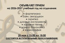 28 мая Детская музыкальная школа имени Джаудата Файзи начинает прием заявлений от будущих учеников. Школа приглашает детей, желающих обучаться игре на музыкальных инструментах, вокалу и другим дисциплинам. Вступительные прослушивания будут проводиться согласно графику. Графики по базовым площадкам и филиалу можно найти в группе социальной сети "Вконтакте" https://vk.ru/wall-216849751_1868 и официальном канале учреждения в "МАХ" https://max.ru/id1659026549_gos