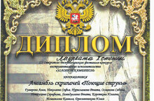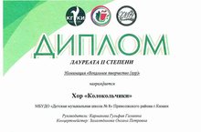 19 мая - учащиеся и хор "Колокольчики" принимают участие в международном детско-юношеском фестивале-конкурсе "Музыкальный форсаж" (Казанский государственный институт культуры). Результаты конкурса: хор "Колокольчики" - Лауреат I степени, руководитель: Карманова Г.Г.; Концертмейстер: Залалтдинова О.П.