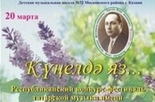 20 марта состоится республиканский конкурс татарской музыки имени Рустема Яхина «Кунелдэ яз» на базе МБОУДОД "Детская музыкальная школа № 32" Московского района г.Казани.
