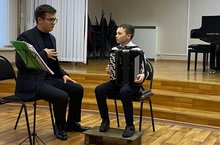 27 февраля прошел Открытый урок Павлова Александра Ивановича с учеником 2 класса Сафиным Алмазом. Тема урока «Начальный этап игры на музыкальном инструменте. Посадка, постановка, владение мехом, артикуляция».