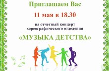24 мая в 18.30 - отчётный КОНЦЕРТ хореографического отделения "Музыка детства" (КЦ "Чулпан", по адресу: пр-т Победы, 48а). Руководители: Ризванова Л.Р., Миндагалиева О.И., Гумерова Р.Х. Афиша -