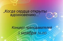 5 ноября - КОНЦЕРТ преподавателей музыкальной школы "Когда сердца открыты вдохновению..."
