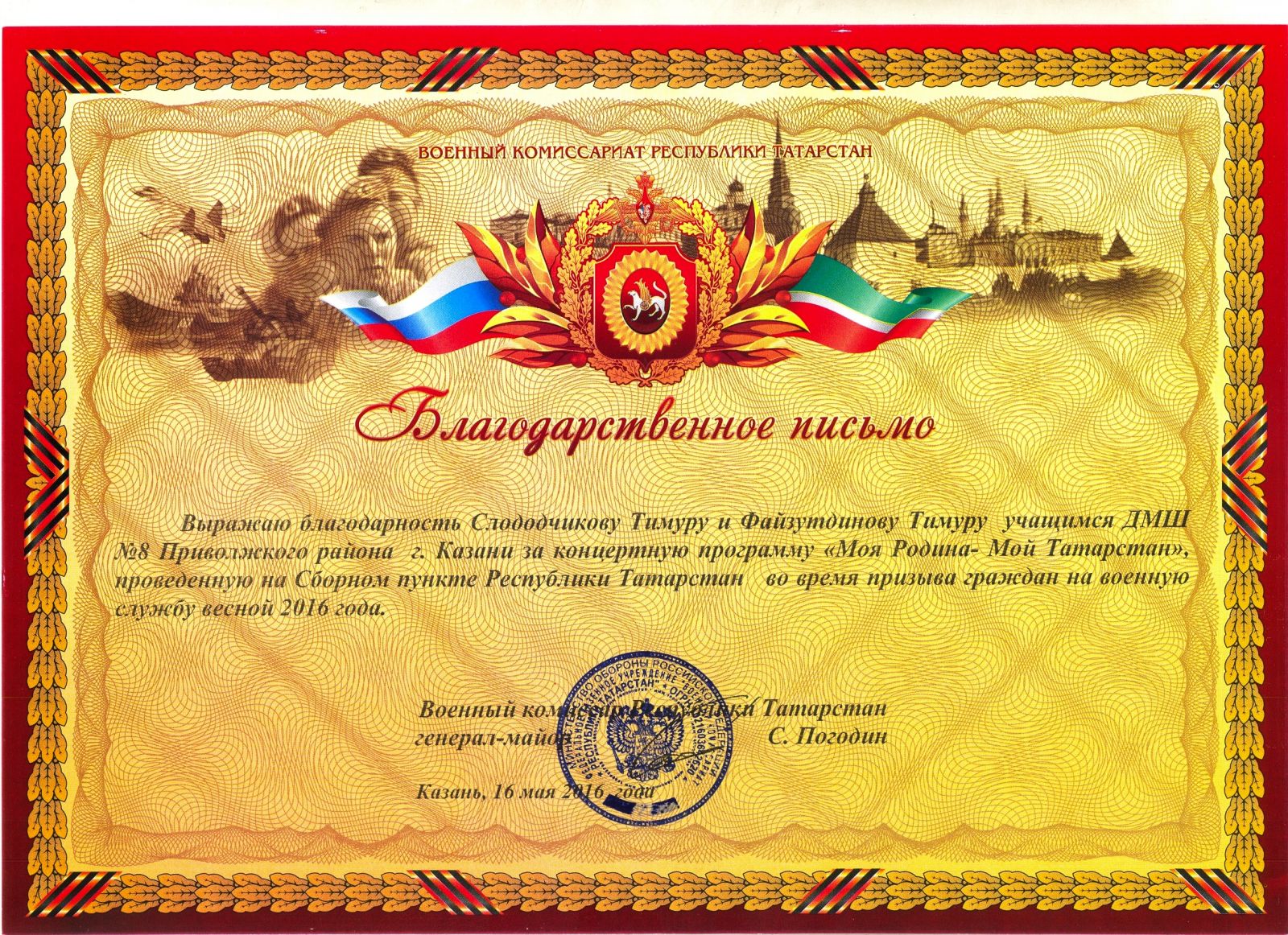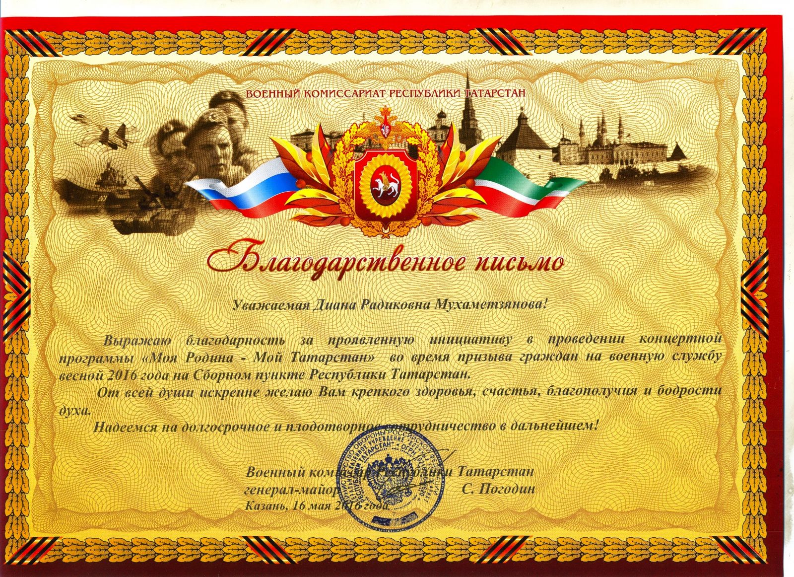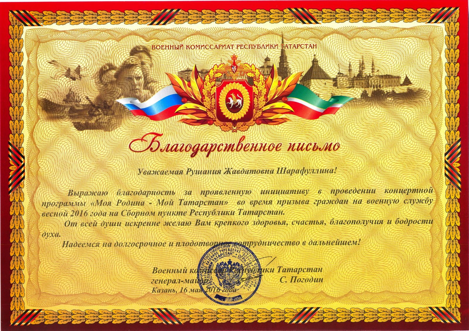 Республиканское мероприятие "Моя Родина - Мой Татарстан" на сборном пункте РТ 1 стр., 2 стр. (Благодарсвенные письма 1, 2, 3, 4, 5 );