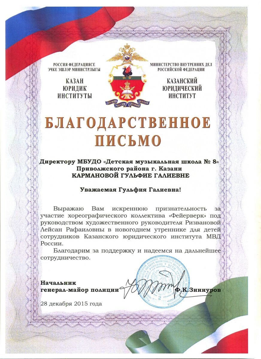 Организация мероприятий в Казанском юридическим институте (Благодарственное письмо)