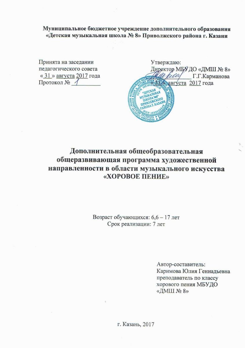 - Дополнительная общеобразовательная программа ("Хоровое пение")