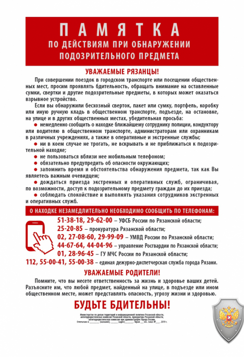 - Памятка по действиям при обнаружении подозрительного предмета