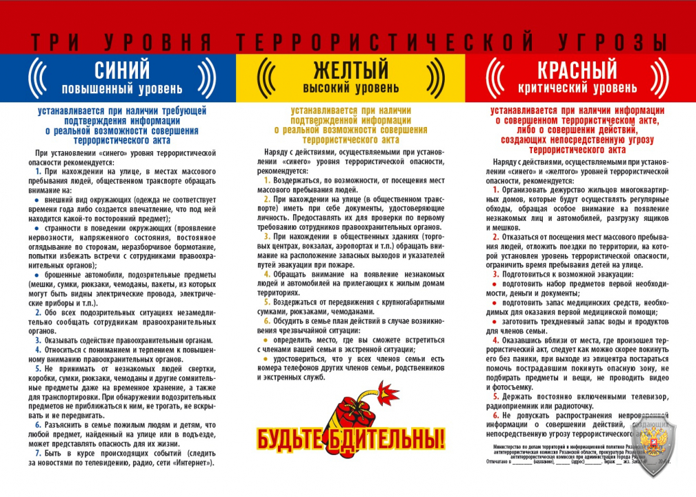 - Памятка Три уровня террористической угрозы