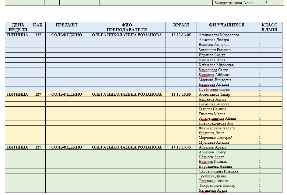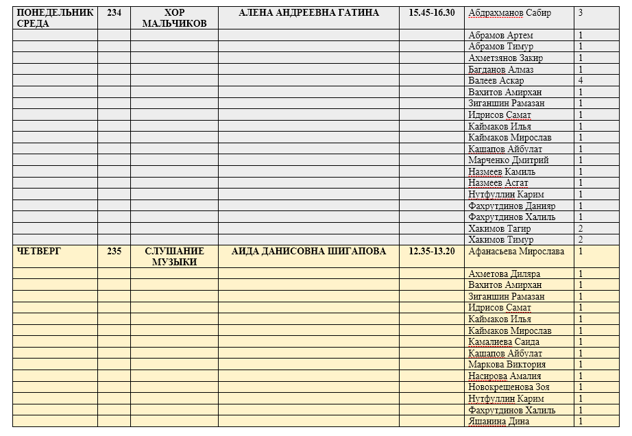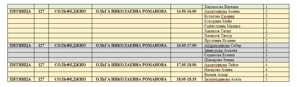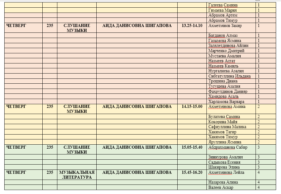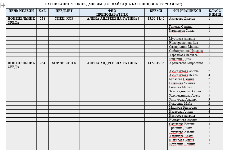 Расписание групповых занятий на базе лицея №133 "Гаилэ"