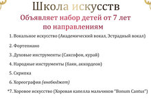 6. ХОРОВАЯ КАПЕЛЛА МАЛЬЧИКОВсрок обучения 5 лет, возраст поступающего от 6,6 до 12 лет включительно: