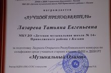 В котором почетное место Лауреата II степени занял Лазарев Валерий, а его преподаватель Лазарева Татьяна Евгеньевна была награждена дипломом "Лучший преподаватель"