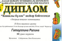 Поздравляем победителей конкурса "Кояшлы булэк" - Лауреаты lll степени Гатауллина Ралина и Мусин Ильфат в номинации эстрадный вокал и Лауреат l степени Имамиев Анель вместе с хореографическим коллективом "Остров детства". Благодарность руководителям Сабирзяновой Ляле Камильевне и Сафину Ильдару Урнаковичу за подготовку детей к выступлению.