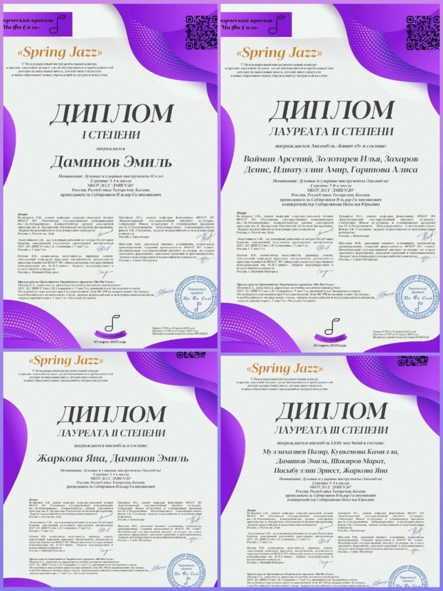 Прием полного комплекта документов осуществляется после регистрации на сайте "Навигатор дополнительного образования Республики Татарстан" с 15 апреля по 28 мая 2025 года по средам и четвергам с 14.00 до 17.00 ОЧНО в учебной части ДМШ №20 по адресу ул.Фучика, 26А (отдельно стоящее одноэтажное здание на территории Гимназии №6, вход через центральный КПП).