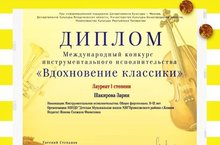 Международный конкурс музыкального исполнительства "Вдохновение классики" 28.03.2021