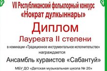 Поздравляем Ансамбль Кураистов "Сабантуй" ДМШ20 с Победой в Республиканском Фольклорном Конкурсе "Нократ Дулкыннары"! Класс преподавателей Расулова Марата Бариевича и Гиниятуллиной Лилии Минулловны!