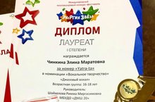 Чинкина Элина - Лауреат I степени Международного многожанрового конкурса-фестиваля "Энергия Звёзд"! Класс преподавателя ДМШ20 Шайхеловой Риммы Миргасимовны! Поздравляем!