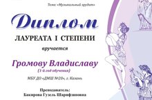 Поздравляем с Победой в Международной Олимпиаде по музыкальной литераьуре учащегося преподавателя ДМШ20 Бакировой Гузель Шарифзяновны!