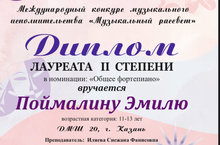 Поздравляем учащегося класа преп. Иляевой С.Ф. - Поймалин Э. - Лауреат II ст.