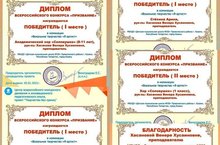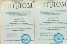 Айнатуллов И.И., - Диплом "За высокий профессионализм и педагогическое мастерство", Айнатуллова Г.А. - Диплом "За профессиональное мастерство и подготовку Лауреата"