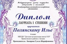 Поздравляем учащегося класса преп. -Бакировой Г.Ш. - Полянский И. - Лауреат I ст.