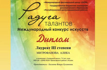 Поздравляем учащуюся класса преп. Хасановой В.Х. - Митрофанова А. - Лауреат II ст.