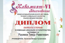 Поздравляем учащегося класса преп. Хасановой В.Х. - Рахимов Т.Р. - Лауреат I ст.