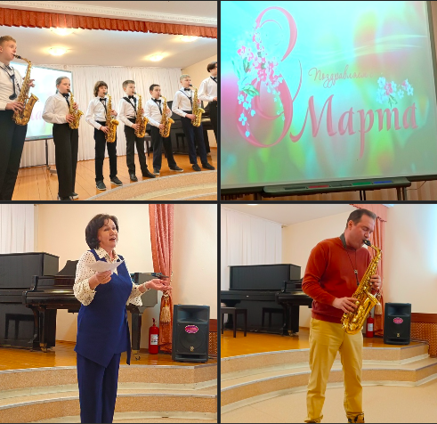 Председатель и актив первичной профсоюзной организации нашей школы, а также учащиеся и преподаватели отделения духовых и ударных инструментов, поздравили всех женщин