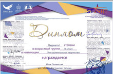 Зайнуллина И. - Дипломант I ст., преп. Яшина Н.Ю.