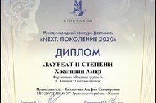 Поздравляем Лауреата Международного конкурса - фестиваля "Next. Поколение 2020" - учащегося ДМШ20 класса " Специальное Фортепиано" Хасаншина Амира - Лауреат II степени, преподавателя Альфии Бахтияровны Галлямовой., Аглеев Ильяс - Лауреат III степени, преп. Фахразиева Г.Ф.