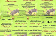 Республиканский конкурс "Ильхам Нуры".Гинанова А.- Лауреат 1Морокко А.- Лауреат 1Чичакян Д. - Лауреат 2Мусина Ч.- Лауреат 3Зайнуллина К.- Лауреат 2 -