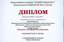 Поздравляем преподавателя ДМШ20 - Оськину З.И. с Победой - Диплом I степени в Международном конкурсе "Грани Педагогики"