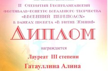 Сафиуллина Айлита - Дипломант II степени, рук. Яхина Г.Б.