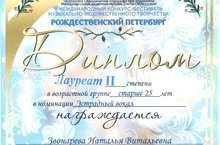 II Международный конкурс-фестиваль музыкально-художественного творчества Рождественский Петербург в г. Санкт-Петербург - Звонарёва Н.В. - Лауреат II степени в номинации эстрадный вокал.