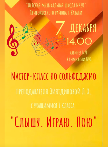 Приглашаем на мастер-класс по сольфеджио "Слышу.Играю.Пою" преподавателя Лилии Харисовны Зиятдиновой!