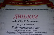 11 ноября 2017 года состоялся Международный вокально-хореографический фестиваль-конкурс "Содружество талантов" - Гайнутдинова Дина, преп. Гатауллина В.Д. - Лауреат I степени