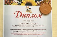 17 ноября 2017 года состоялся ХV Всероссийский фольклорно-этнографический фестиваль "Кузьминки".Учащиеся ДМШ № 20 ансамбль "Млада" под руководством Самойловой А.В., Гилязова И.В. награждены Дипломом и Юбилейной медалью! М О Л О Д Ц Ы !