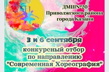 3 и 6 сентября ДМШ №20 объявляет конкурсный отбор в хореографический коллектив "Обыкновенное чудо" по направлению "Современная хореография".