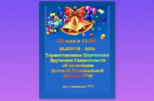 В зале Гимназии №6 состоится Торжественная Церемония Вручения Свидетельств об окончании Детской Музыкальной Школы №20