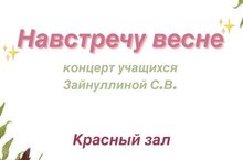 6 марта в Красном зале ДМШ №20 состоится праздничный концерт класса преподавателя Зайнуллиной С.В. "Навстречу весне"