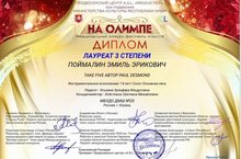 П О З Д Р А В Л Я Е М выпускника ДМШ №20 Эмиля Поймалина с успешным выступлением в Международном Фестивале-конкурсе искусств "На Олимпе"!!! Преподаватель Оськина Зульфира Ильдусовна!!!