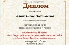 Поздравляем с Победой во II Всероссийском конкурсе педагогических идей "Образование. Технологии. Практики" с конкурсной работой: "Бетховен К Элизе" - преподавателя ДМШ №20 - Хайнс Елену Николаевну!