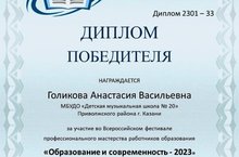 Муниципальное бюджетное учреждение дополнительного образования «Детская музыкальная школа №20» Приволжского района г.Казани - новости