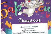 Хореографический коллектив "Кляксы" под руководством преподавателя Андреевой Ольги Александровны стали дипломантами 1 степени Всероссийского фестиваль-конкурса юношеского творчества "Барсик"