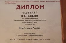 Шайхиева Алина - лауреат 2 степени, преподаватель Гильмуллина Э.М.