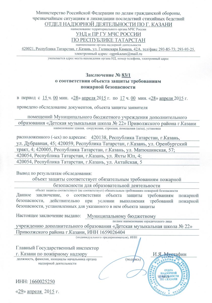 Заключение о соответствии объекта защиты требованиям пожарной безопасности