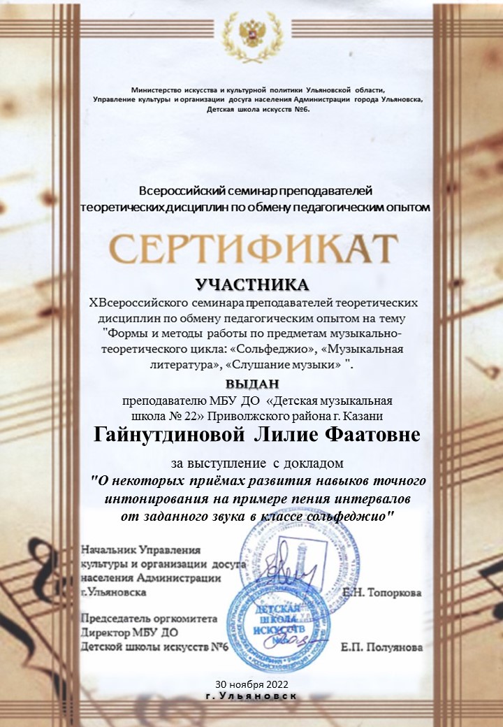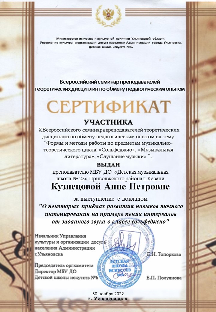 Муниципальное бюджетное учреждение дополнительного образования «Детская музыкальная школа № 22 Приволжского района г.Казани»